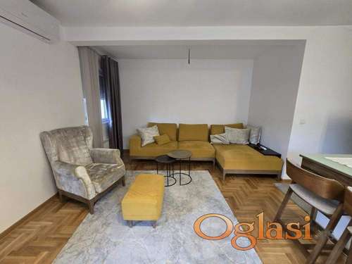 Tekst oglasa: Izdaje se stan u mirnoj ulici na Zvezdari. Ima dve spavaće sobe, jedna sa bračnim krevetom jedna sa singl krevetom. Dnevna soba je prostrana. Kuhinja kompletno opremljena sa rernom ,šporetom, frižiderom i mašinom za pranje veša, sudovima. U kupatilu je tuš kabina , mašina za pranje veša. Stan je opremljen kompletno sa novim nameštajem i uređajima , sa puno prostora za odlaganje. Terasa je 28m2, jedan deo je zastakljena a drugi deo je otvoren sa garniturom za sedenje. Sa dve strane terase je zidana žardinjera sa zelenilom. Agencijska provizija 50% od prve zakupnine. |