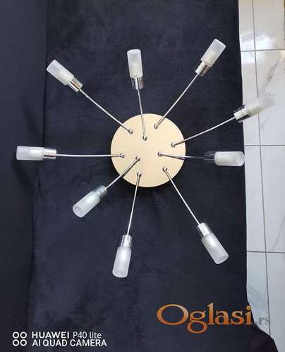 Tekst oglasa: <p>Moderna plafonjera sa više krakova.</p> <p>Sastoji se od centralne baze i više krakova sa sijalicama, što omogućava širenje svetlosti u više pravaca.</p> <p>Na krajevima svakog od devet krakova nalaze se male, cilindrične, matirane staklene senke za sijalice.</p> <p>Podseća na zvezdu ili sunce. </p> <p>Ovaj tip rasvete je pogodan za dnevne sobe, trpezarije ili hodnike, pružajući i funkcionalno svetlo i dekorativni izgled. </p> <p>Moguć dogovor.</p> <p> </p> <p>Pogledajte i ostale moje oglase.</p> |