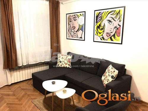 Tekst oglasa: Stan preko puta Zire u Cvijićevoj ulici, 5 minuta od Vukovog spomenika, 47 m2, terasa dužinom celog stana, odličan raspored prostorija, izuzetno svetao i dvostrano orijentisan, kuhinja s prozorom na svetlarnik, dnevna soba s prozorom na Cvijićevu ulicu i svetlarnik, spavaća soba s pogledom na Cvijićevu ulicu, na pretposlednjem spratu šestospratne zgrade sa liftom, kompletno uređen i opremljen (dnevna soba, ugaona garnitura, stočići, natkasne, spavaća soba, krevet, ugradni ormar, noćni stočići i trpezarija) i svi uređaji (tv, mašina za veš, šporet, rerna, mikrotalasna, frižider). Zgrada ima samo za stanare parking u dvorištu (sa rampom i pod ključem). Posebno je interesantan zajednički prostor na krovu koji su stanari uredili i koristi se kao divna terasa o kojoj se brinu svi stanari, prava zelena oaza. Agencijska provizija 50% od prve zakupnine. |