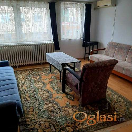 Tekst oglasa: Jednosoban stan, 350€ kirija, troskovi (struja, topla, hladna voda i grejanje) 80€ za jednu osobu, depozit obavezan. Agencijska provizija 50% od prve zakupnine. |