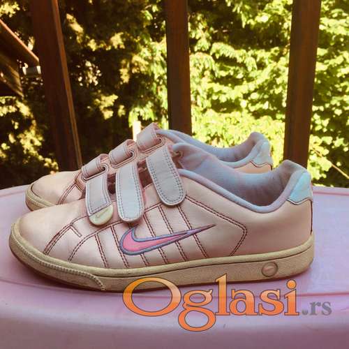 Tekst oglasa: <p>Prodajem odlicno ocuvane Nike patike, kozne, roza. Deciji broj 38, a broj 37 za odrasle.</p> |
