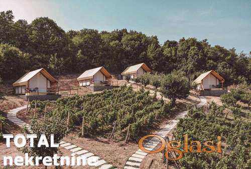 Tekst oglasa: Agencijska oznaka 3090470. Na prodaju glamping odmarališe na padinama Fruške gore na 11260 m2 sa pogledom na Dunav. Odmarališe se sastoji od 4 objekta, bazena u sklopu kojeg se nalazi i vinograd, voćnjak. Kompletno izgradjena infrastruktura-struja, voda, kanalizacija sa biološkim prečiščivačima. Moguće je dodati još 8 bungalova sa grejanjem koji bi radili cele godine. Dobra prilika za investiciju. Glamping odmaralište se nalazi na 4 gradjevinske parcele, gde je stepen izgradjenosti 10% za one kupce koji imaju drugačiju viziju. . Nalazi se na 70-ak od Beograda i 20-ak kilometara od Novog Sada. |