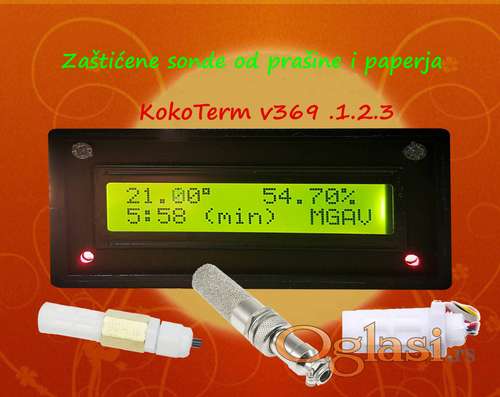 Tekst oglasa: <p>⭐️⭐️⭐️⭐️⭐️ <strong>KokoTerm Pro v369 za manje snage</strong></p> <p><strong>Specijalno zaštićene sonde</strong> za vlagu<br /> U plastičnom i metalnom kućištu. </p> <p>⭐️ <strong>SVI uredjaji su MOJI lični PROJEKTI</strong>.</p> <p>Pogledajte sve moje oglase.</p> <p> ⭐️ PRECIZNOST.<br /> ⭐️ KVALITET.<br /> ⭐️ DUGOTRAJNOST<br /> ⭐️ SIGURNOST.<br /> ⭐️ BAŽDARENE temperaturne sonde</p> <p>4 u 1 - Termoregulator, Vlagoregulator, Tajmer, Alarm.<br /> Automatski digitalni uredjaj.<br /> Specijalno projektovan za samogradnju i za ostale korisnike.</p> <p><strong>U ponude tri varijante uredjaja: </strong></p> <p> 1. <strong>KokoTerm v369.1</strong> sa jednom sondom 65e.<br /> 2. <strong>KokoTerm v369.2</strong> sa dve sonde 67 evra<br /> 3. <strong>KokoTerm v369.3</strong> sa tri sonde 68 evra<br /> <br /> DOPLATA ZA METALNO KUCISTE SONDE 3.5e</p> <p>Svi uredjaji 4u1 rade isto samo je razlika sa koliko sondi je očitavanje.</p> <p><strong>Uredjaji mogu imati ove tajmere: </strong><br /> 1. Sekunda / Minut (sekude radi / minute pauza)<br /> 2. Minut / Minut (minute radi / minuti pauza)</p> <p><strong>Opis</strong>:<br /> Četiri u jedan. Kontrola i Upravljanje TEMPERATURE, VLAGE, TAJMERA i ALARMA.</p> <p>1. Upravljanje grejačem vazduha. do 500w<br /> 2. Upravljanje vlagom (ventilator, grejač vode ili paro isparivač). do 100w<br /> 3. Okretanjem police za jaja (tejmer). do 80w<br /> 4. Kontrola i upravljanje alarmom. do 50w<br /> 5. Podešavanje temperature, korak 0,1 stepen.<br /> 6. Podesavanje vlage, korak 1%.<br /> 7. Podesavanje tajmera, korak 1,0 minut ili 1,1 sekunde.<br /> 8. Podešavanje alarma +-, korak 0,1 stepen.<br /> 9. Ispis na ekranu svih podešavanje i pamti sve parametre.<br /> Slika 4 izbor sondi za vlagu. </p> <p> </p> |