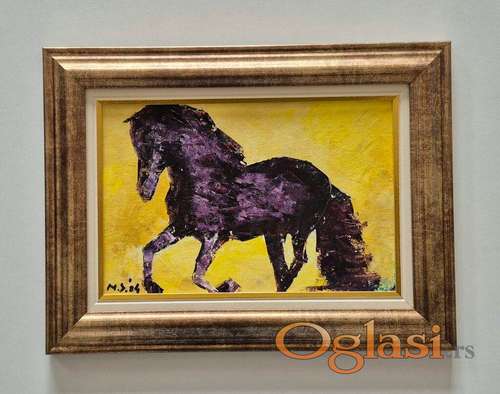 Tekst oglasa: <p>Ulje na platnu Veseo konj, prelepo umetnicko delo. Slika je uramljena u jako lep ram, dimenzije slike sa ramom 41 x 31. Privatna kolekcija.</p> |