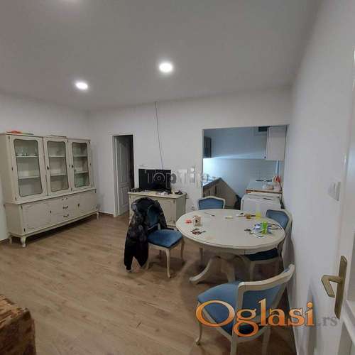 Tekst oglasa: Četvorosoban salonski stan, 196 m2, na prvom spratu kod mlečne pijace koncipiran kao jedna celina koja se sastoji od dva stana trosobnog i jednosobnog. Grejanje je na gas, parketiran i ima dva kupatila. Stanu pripada i deo prelepog dvorišta površine oko 500 m2. |