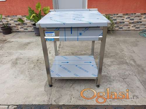 Tekst oglasa: <p>Radni sto je od prohroma sa plocom od kiselo otpornoga prohroma,otvoren sa policom na 140mm od zemlje u cenu nije uracunata dostava.</p> |