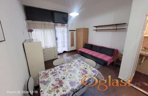 Tekst oglasa: <p>Nameštena garsonjera, TA grejanje, mogućnost povezivanje na kablovsku TV i internet. Dobra povezanost sa centrom grada, linije 47, 48, 50, 54, 59, 94, 502, ...</p> |