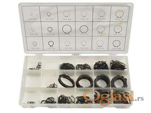 Tekst oglasa: <p>Seger prsten spoljni 300 kom<br /> Seger prsten (osigurač) Spoljni 300 kom<br /> U kompletu ima 300 Spoljni Seger osigurača<br /> - 32mm- 5 kom. <br /> - 28mm- 10 kom. <br /> - 26mm- 15 kom. <br /> - 25mm- 15 kom. <br /> - 22mm- 20 kom. <br /> - 20mm- 15 kom. <br /> - 19mm- 25 kom. <br /> - 16mm- 20 kom. <br /> - 14mm- 15 kom. <br /> - 13mm- 25 kom. <br /> - 12mm- 15 kom. <br /> - 11mm- 15 kom. <br /> - 9mm- 20 kom. <br /> - 8mm- 15 kom. <br /> - 6mm- 15 kom. <br /> - 4mm- 10 kom. <br /> - 3mm- 20 kom.</p> <p>Proizvod: Poljska<br /> Novo i ne korisceno</p> <p>Ukoliko zelite da porucite, posaljite poruku preko SMS PORUKE ili VIBERA <br /> 1. Ime i prezime<br /> 2. Ulica i broj<br /> 3. Postanski broj mesto<br /> 4. Kontakt telefon<br /> Ili pozovite na broj telefona 0611914635</p> |