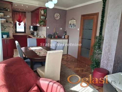Tekst oglasa: <p>****Odličan porodični stan*** Povoljno ! Prodajemo u mirnoj ulici u Veterniku stan u kući. Nalazi se na prvom spratu i ima i pripadajući tavanski prostor koji daje mogućnost za dodatni stambeni prostor. Stan poseduje tri spavaće sobe , kupatilo, predsoblje. Kuhinja, trpezarija i dnevna soba su jedna celina. Iz tog dela se izlazi na terasu, koja je dvorišno orjentisana i koja poseduje hladnu ostavu. Stan ima i pripadujuću garažu kao i dodatnu ostavu u tom delu zgrade. Papirološki stan je odvojen i uknjižen na 88m2. Grejanje na gas. Na samo sto metara je stajališe gradskog prevoza a u blizini je i škola. Informacije na broj telefona: 065 385 88 81, Irena. Više fotografija možete pogledati na našem sajtu: www.status-nekretnine.com A57-22411.</p> |