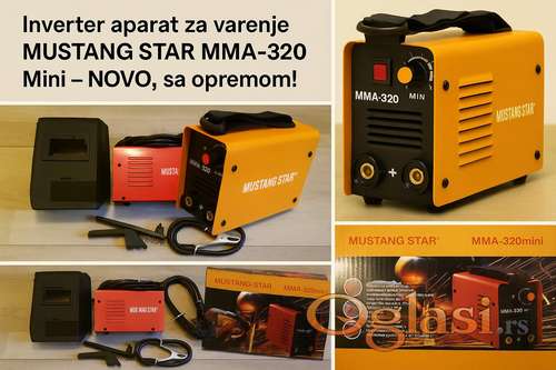 Tekst oglasa: <p>NOVO, FABRIČKI ZAPAKOVANO<br /><br /> </p> <p><strong>Inverter aparat za varenje MUSTANG STAR MMA-320 Mini – NOVO!</strong></p> <p> </p> <p>Prodajem potpuno nov <strong>inverter aparat za varenje MUSTANG STAR MMA-320 Mini</strong>.</p> <p> </p> <p><strong>Karakteristike: </strong></p> <ul><li>Radni napon: 230 V / 50 Hz</li> <li>Napon bez opterećenja: 68 V</li> <li>Opseg zavarivanja: 20 – 320 A (kontinuirano)</li> <li>Stepen zaštite: IP 21 S</li> <li>Zaštita od preopterećenja (automatsko isključivanje)</li> <li>Koristi elektrode od 1.6 do 3.2 mm</li> <li>Ugrađeno hlađenje – nema pregrevanja!</li> <li>Kompaktan i lagan – lako prenosiv</li> </ul><p><strong>Uz aparat dobijate komplet: </strong></p> <ul><li>Inverter aparat</li> <li>Kablovi</li> <li>Zavarivačka maska</li> <li>Četka sa čekićem</li> <li>Originalno pakovanje</li> </ul><p> Vrlo jednostavan za upotrebu – idealan za kućnu i profesionalnu upotrebu!</p> |