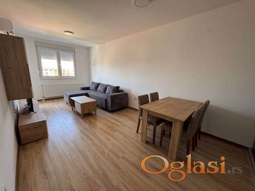 Tekst oglasa: <p><strong>🏡 Izdaje se nov, jednoiposoban stan 46m²</strong></p> <p>Izdaje se potpuno nov, neuseljavan jednoiposoban stan površine 46m² u novoj zgradi. Stan je moderno opremljen i spreman za useljenje.</p> <p>📐 <strong>Struktura stana:</strong></p> <ul><li> <p>Dnevna soba sa trpezarijom i kuhinjom</p> </li> <li> <p>Spavaća soba</p> </li> <li> <p>Kupatilo</p> </li> <li> <p>Terasa</p> </li> </ul><p>🛋️ <strong>Opremljenost:</strong><br /><strong>Stan je kompletno namešten i poseduje:</strong></p> <ul><li> <p>Kuhinju sa šporetom sa ravnom plocom i ventilatorskom rernom, velikim kombinovanim frižiderom i ugradnim aspiratorom</p> </li> <li> <p>Dnevnu sobu sa ugaonom garniturom na razvlačenje, klub stolom, TV regalom, Smart TV (43”) i klimom</p> </li> <li> <p>Trpezarijski sto sa 4 stolice</p> </li> <li> <p>Spavaću sobu sa bracnim krevetom, 2 noćna stočića i velikim plakarom</p> </li> <li> <p>Predsoblje sa plakarom, čivilukom i cipelarnikom</p> </li> <li> <p>Kupatilo sa veš mašinom</p> </li> </ul><p>🔥 <strong>Grejanje:</strong></p> <ul><li> <p>Etažno grejanje na gasni kotao (grejanje i topla voda)</p> </li> <li> <p>Niski mesečni troškovi</p> </li> </ul><p>📍 <strong>Lokacija:</strong><br /><strong>Stan se nalazi na odličnoj lokaciji, na oko 650m od centra grada.</strong><br /> **U blizini su vrtić, skola, dom zdravlja, pošta, pijaca, dok se u prizemlju zgrade nalazi **<strong>Maxi</strong> market.</p> <p>💡 <strong>Dodatno:</strong></p> <ul><li> <p>Infrastruktura za optički internet</p> </li> <li> <p>Internet i TV zakupac prijavljuje na svoje ime</p> </li> </ul><p>💶 <strong>Cena:</strong></p> <ul><li> <p>350€ mesečno</p> </li> <li> <p>Depozit u visini jedne mesečne kirije</p> </li> <li> <p>Obavezan ugovor o zakupu.</p> </li> </ul><p>Namestaj, kao i svi uredjaji u stanu su novi.</p> <p>📞 Za više informacija i zakazivanje razgledanja, kontaktirajte me na tel. 064/246-29-60</p> |