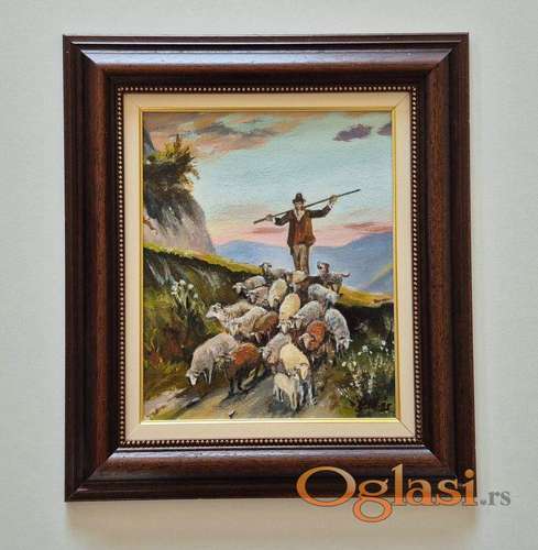 Tekst oglasa: <p>Ulje na platnu Coban u planini, prelepo umetnicko delo. Slika je uramljena u jako lep ram, dimenzije slike sa ramom 42 x 37. Privatna kolekcija.</p> |
