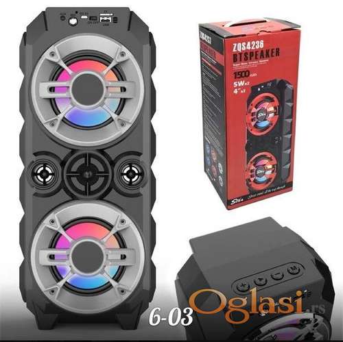 Tekst oglasa: <p>Bluetooth karaoke zvučnik 16W ZQS 4237</p> <p><br /> Bluetooth povezivanje <br /> FM radio <br /> Ulaz za USB <br /> Ulaz za SD karticu</p> <p>Ulaz za mikrofon <br /> AUX ulaz<br /> LED osvetljenje <br /> Snaga: 16W (2x8W)<br /> Baterija: Li-on 3000mAh<br /> Vreme rada: oko 4h<br /> Vreme punjenja: oko 5h <br /> Dimenzije: 39x17x13cm </p> <p>Sadržaj pakovanja: <br /> Zvučnik </p> <p>USB kabal za punjenje </p> <p>---------------------------------Ukoliko zelite da porucite-------------------<br /> Posaljite poruku preko SMS PORUKE, VIBER<br /> 1 Ime i prezime<br /> 2 Ulica i broj<br /> 3 Mesto i postanski broj<br /> 4 Broj telefona za kontakt</p> |