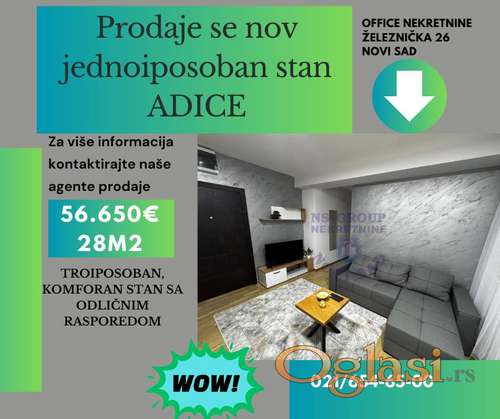 Kategorija: Stanova (Nekretnine, Prodaja) Lokacija: Adice (Srbija, Novi Sad, Novi Sad) Sobnost: Jednoiposoban Kvadratura: 28 Nivo u zgradi: Prizemlje