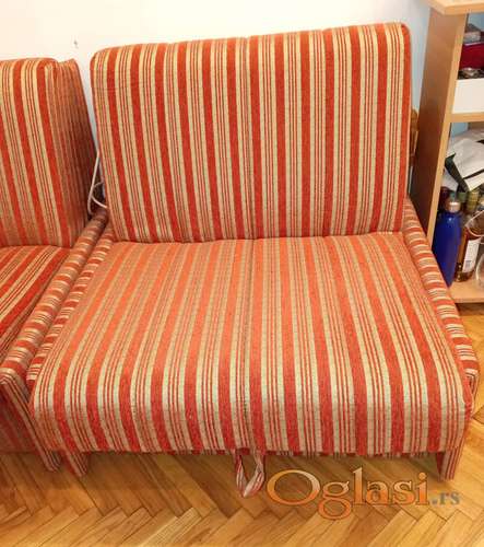 Tekst oglasa: <p>Prodajem očuvanu fotelju na razvlačenje, širine 80 cm. Ispod dela za sedenje je prostor za posteljinu. U razvučenom položaju je dugačka 180 cm. Pogodna je za male prostoruje.</p> <p>Na prodaju imam dve fotelje. Cena po komadu je 70 eura. </p> |
