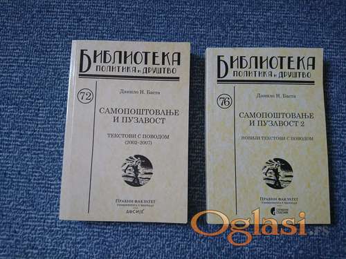 Tekst oglasa: <p>Naslov: Samopoštovanje i puzavost 1-2<br /> Autor(i): Danilo N. Basta<br /> Izdavač: Pravni fakultet<br /> Mesto: Beograd<br /> Godina: 2007; 2010<br /> Povez: mek<br /> Strana: 306, 278<br /> Format: 20x27<br /> Pismo:ćirilica<br /> Stanje knjige: kao novo - nekorišćeno</p> <p style="margin-left:0in;margin-right:0in;">tel/viber: 063/17-47-258</p> <p>Lično preuzimanje podrazumeva dolazak na mesto gde se dogovorimo (Beograd - uglavnom centar, Muzej Istorije Jugoslavije, tj. Hajd Parka, Autokomanda, Dedinje) u tom slucaju i plaćanje lično.</p> |