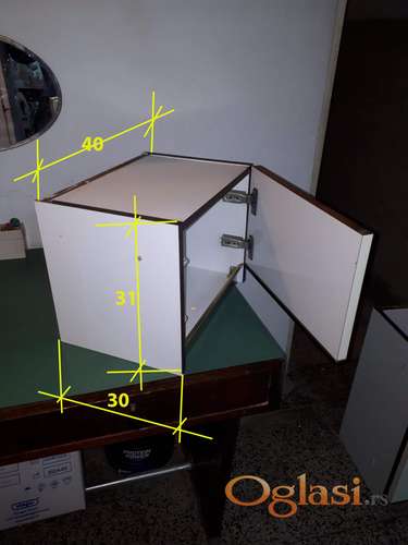 Tekst oglasa: <p>Viseći polovni kuhinjski nadogradni element od 40 cm "MARLES" . Dobro očuvan.</p> <p>Komada 2 .( Cena svakog elementa je 10 evra).</p> <p>CENA: 10 evra po komadu</p> <p>DIMENZIJA: 40 x 31 x 30 cm</p> <p>Direktno preuzimanje, ( ne šaljem poštom).</p> <p> 062/190 88 74 , 021/422-544</p> <p> </p> |
