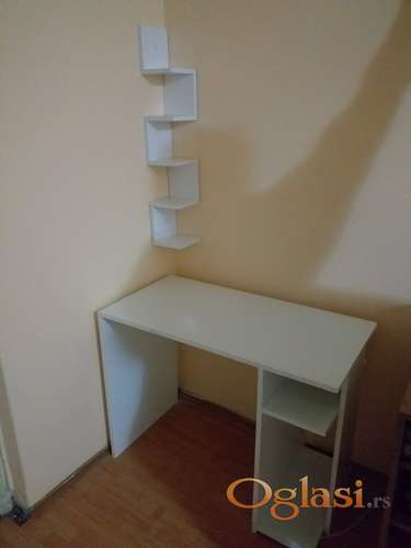 Tekst oglasa: <p>DOSTUPNO ODMAH PLACANJE NA ISPORUCI</p> <p>-Radni sto od univera u belom dekoru debljine 18mm.</p> <p>-Dimenzije stola su 100cm sirina 50cm dubina 75cm visina.</p> <p>-Dimenzije police su 16,5cm sirina 16,5cm dubina visina91,5cm</p> <p>- Mozete preuzeti licno, moze i moja dostava ili kurirskom sluzbom</p> |