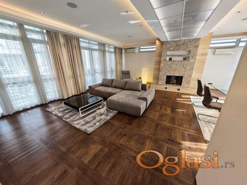 Tekst oglasa: <p>Izdajemo odličan stan od 148m² na prestižnoj lokaciji na Dedinju, u ekskluzivnom kompleksu sa samo šest stanova, pri čemu je svaki stan smešten na zasebnom spratu, što pruža potpunu privatnost.</p> <p>Stan odlikuje prostran dnevni boravak koji se neprimetno povezuje sa trpezarijom, stvarajući harmoničan prostor za uživanje i boravak. Trenutna struktura je trosobna, sa mogućnošću adaptacije u četvorosoban stan prema potrebama zakupca. Dve prostrane spavaće sobe, dva kupatila i dve terase dodatno doprinose udobnosti, kao i posebna ostava. Zgrada se ističe modernim dizajnom, vrhunskim materijalima i pažljivo osmišljenim detaljima. Pored luksuznog enterijera, kompleks nudi i ekskluzivne sadržaje poput bazena dostupnog isključivo stanarima i uređenog dvorišta sa privatnom baštom.</p> <p>Visok nivo bezbednosti osigurava video nadzor sa više od 20 kamera i blindirana vrata u stanu. Dodatnu udobnost pružaju dva sistema grejanja i hlađenja – toplotna pumpa na struju i fan coil sistem na gas. Ovaj stan predstavlja idealan spoj modernog dizajna, komfora i ekskluzivnosti na jednoj od najelitnijih lokacija u Beogradu.</p> <p>U cenu zakupa ulaze i dva garažna mesta.</p> <p>Posrednička naknada je u skladu sa Opštim uslovima poslovanja Posrednika "DIVIS NEKRETNINE" d.o.o.</p> |