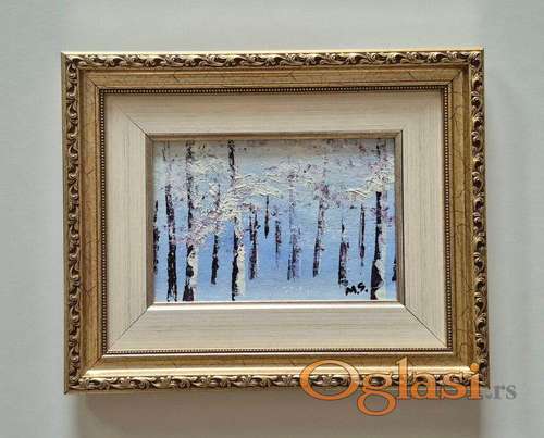 Tekst oglasa: <p>Ulje na platnu Tiha zima, prelepo umetnicko delo. Slika je uramljena u jako lep ram, dimenzije slike sa ramom 32 x 26. Privatna kolekcija.</p> |