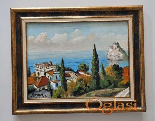 Tekst oglasa: <p>Ulje na platnu Mediteranska razglednica, prelepo umetnicko delo. Slika je uramljena u jako lep ram, dimenzije slike sa ramom 51 x 41. Privatna kolekcija.</p> |