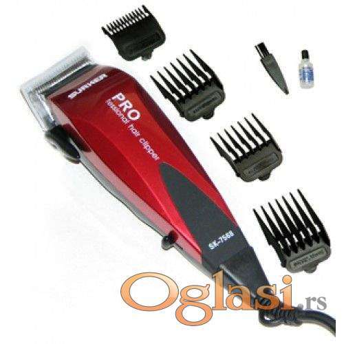 Tekst oglasa: <p>Тrimer SURKER sa 4 češljića je vrlo jednostavna za upotrebu i praktična za primenu u frizerskim salonima kao i u kućnim uslovima. Dužina sečenja kose se može podesiti od 3,6,10 i 12mm. Besprekornog je kvaliteta, funkcionalna i modernog dizajna. Snage je 12w, potpuno novo u originalnom pakovanju. Šaljem brzom poštom a moguće je i lično preuzimanje u Novom Sadu.</p> |