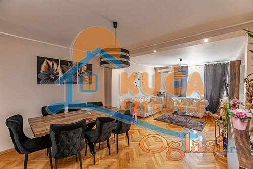 Tekst oglasa: Prodaje se stan uknjižene površine 90m2, stvarne sa terasama 98m2, u blizini Pravnog Fakulteta. Stan se sastoji iz ulaznog hodnika, levo su dve spavaće sobe od kojih ima jedna izlaz na terasu, desno je kupatilo. Pravo se ulazi u veliki višenamenski prostor na čijem je početku kuhinja koja je izolovana i ima prirodnu ventilaciju, trepezarija i dnevna soba. Iz dnevne sobe se ulazi još u jednu roditeljsku spavaću sobu koja ima izlaz na još jednu terasu. Stan je renoviran pre nekoliko godina, svaka soba ima svoj ugradni garderober, a uz stan ide pripadajuća, ozidana podrumska prostorija od oko 10m2. Stan se prodaje potpuno namešten sa nameštajem i tehnikom bez ikakvog dodatnog ulaganja. U stanu je takodje uradjeno etažno grejanje sa kotlom na pelet koji se koristi. Stan je jugo-zapadne orjentacije. Iza zgrade je veliki parking koji koriste stanari zgrade. Stan je svojina jedan kroz jedan, postoji mogućnost kupovine putem stambenog kredita. Ovo je preporuka naše agencije, stan je kvalitetno renoviran u blizini centra grada, odličan za višečlanu porodicu ili kao investicja za izdvanje. |