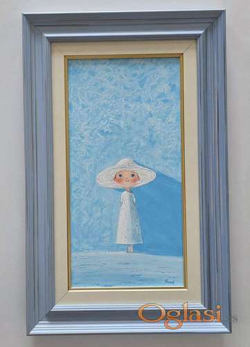 Tekst oglasa: <p>Slika Devojcica i sesiric, tehnika akril na platnu. Prelepo umetnicko delo. Slika je uramljena u jako lep ram, dimenzije slike sa ramom 55 x 35. Privatna kolekcija.</p> |