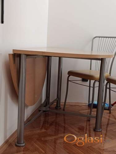 Tekst oglasa: <p>Prodajem sto prečnika 120cm, može da se spusti samo jedna strana stola ili obe. </p> <p>Stolice su isto Simpo i u dobrom su stanju, stabilne i čvrste.</p> <p>Sto je 12000, a 4 stolice su 8000 dinara.</p> |