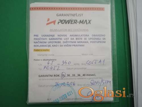 Tekst oglasa: <p>Akumulator POWER-MAX <strong>NOV kupljen 26.02.2026 pod garancijom. i </strong></p> |