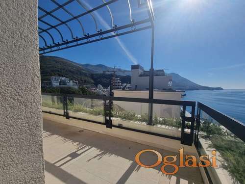 Tekst oglasa: <p>Na prodaju luksuzan stan 113 m2 na 1. redu u Bečićima. Nova luksuzna zgrada sa tihim dizalima, parkingom, bazenom.</p> <p>Površina apartmana je 113 m2. Dnevni boravak, 2 spavaće sobe, 2 kupaonice. Puno terasa. Fantastičan pogled na more!</p> |