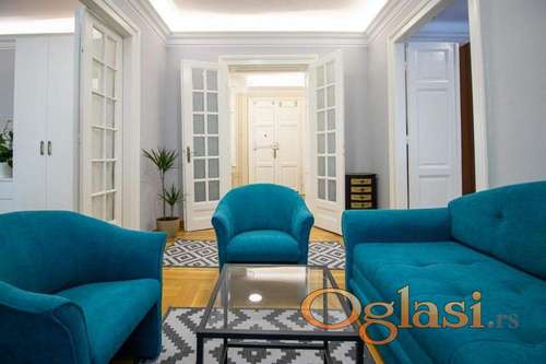 Tekst oglasa: Na izdavanje renoviran i kompletno opremljen salonski stan površine 80m², smešten na 3. spratu zgrade bez lifta, u jednoj od najlepših ulica u strogom centru Beograda – Dositejeva. Struktura: - Dnevna (salonska) soba - Dve spavaće sobe - Kuhinja sa trpezarijom - Kupatilo - Hodnik - Dve terase (iz dnevne sobe i iz kuhinje) Karakteristike: - Površina: 80m² - Sprat: 3/4 - Grejanje: Centralno - Debeli zidovi – odlična izolacija - Stan je ušuškan, ali osunčan - Salonski tip stana sa visokim plafonima - Kompletno namešten Lokacija: Stan se nalazi u Dositejevoj ulici, u samom centru grada, na par minuta hoda od Knez Mihailove ulice. Miran deo ulice, a u neposrednoj blizini su svi sadržaji – restorani, kafići, prodavnice i kulturni sadržaji. 💵 Cena zakupa: 1.100€ 📞 Kontakt: Branislav – +381 64 2420 492 📌 Napomena: Agencijska provizija prema opštim uslovima poslovanja |