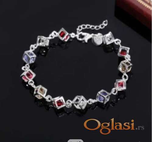 Tekst oglasa: <p>Srebrna narukvica izrazito lepa i jedinstvena, ukrašena sa cirkonima u savakoj kocki. </p> |