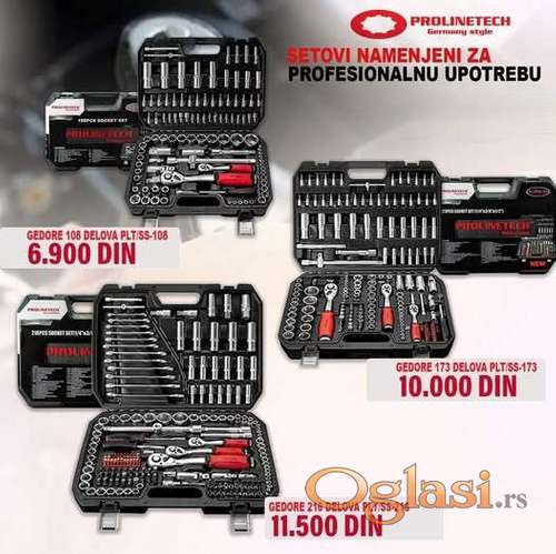 Tekst oglasa: <p>Gedore 108 delova: CENA 6.900 DIN</p> <p>Gedore 173 delova: CENA 10.000 DIN</p> <p>Gedore 216 delova: CENA 11.500 DIN</p> |