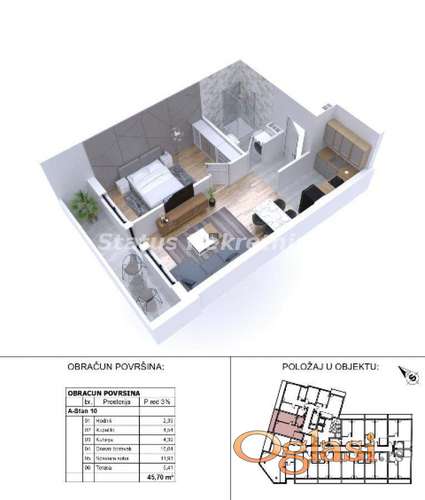 Šifra oglasa: 03-3752723 Datum postavljanja oglasa: 14.01.2026 Kontakt: STATUS NEKRETNINE reg.br. 182 Telefon: 021/ 526 622, 021/ 522 177 |