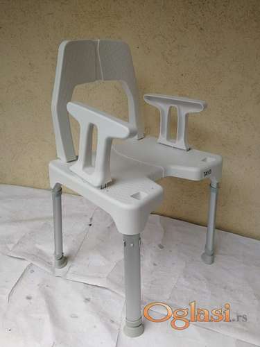 Tekst oglasa: <p>Veoma lagana. Nemačka marka.</p> <p>Anatomski oblikovan sedalni deo, vodootporan</p> <p>Podešava se visina stolice</p> <p>Nosivost 130 kg</p> <p>Na krajevima nogu se nalazi zaštita koje sprečavaju klizanje stolice i oštećenje kade.</p> <p>Proizvedena za nemačko tržište</p> <p>Veoma očuvana</p> <p>DIMENZIJE SEDALNOG DELA:</p> <p>ŠIRINA/DUBINA- do 40 cm x 40cm</p> <p>Rasklapajuća, kada se rasklopi zauzima veoma MALO PROSTORA.</p> <p>Mogu da se rasklope i noge i naslon za leđa i naslon za ruke.</p> <p>Imamo nekoliko rasklapajucih modela na stanju ...</p> <p> </p> <p>Imamo najveći izbor stolica za tuš kadu (isto tako i sedeću kadu) u Srbiji, više od 10 modela, od rotirajućih, kružnih, kvadratnih, pravougaonih, do trouglastih (tronožaca), sa naslonom za leđa i ruke i bez naslona za leđa ili ruke, sklopive i nesklopive, one koje se motiraju na zid ili samostojeće, od 100 do 200 kg nosivosti . . .</p> |