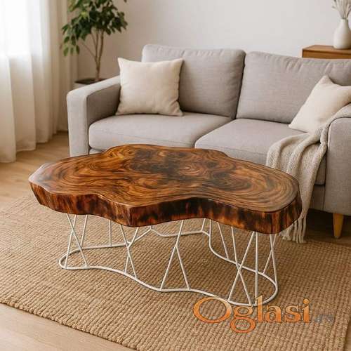 Tekst oglasa: <p>Klub sto napravljen od drveta Mazera sa epoxydnom smolom i metalnim nogama koje imaju stopice za štelovanje visine.</p> <p>Ovaj jedinstveni klub sto je napravljen od punog drveta, ističući prirodnu lepotu i organski oblik drveta. Čitava površina je zaštićena slojem providne epoxy smole, što pruža izdržljivost i sjajnu završnu obradu.</p> <p>Stoji na čvrstim metalnim nogama u crne boje, dodajući dašak sofisticiranosti i industrijskog šarma. Svaki komad je jedinstven, spajajući rustičku estetiku sa modernim dizajnerskim elementima.</p> <p>Dimenzije:</p> <p>Širina: 77 cm</p> <p>Dužina:120 cm</p> <p>Visina: 48 cm</p> <p>Debljina ploče:7 cm</p> <p><em><strong>Korekcija cene za veće količine !!!</strong></em></p> <p>"Naša radionica specijalizovana je za izradu namještaja po meri vaših potreba i preferencija. Kontaktirajte nas da kreiramo vaš savršeni komad!"99</p> |