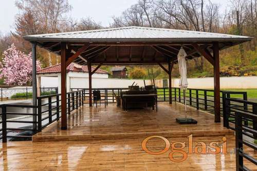 Tekst oglasa: Na izuzetnoj lokaciji, neposredno uz Miljakovačku šumu, prodaje se luksuzna porodična kuća koja pruža savršen spoj prirode, privatnosti i komfora modernog života. Kuća se nalazi na uređenom placu površine gotovo 8 ari, okružena zelenilom i mirom, a projektovana je kao objekat spratnosti PO + PR + I + PK. Uz objekat se nalaze čak četiri garažna mesta, što dodatno doprinosi funkcionalnosti i komforu. Uknjižena stambena površina iznosi 182 m², dok sa podrumskim prostorijama, saunom i garažama ukupna površina objekta iznosi oko 280 m². Struktura objekta: Podrum: sauna, kupatilo, sportska soba i kotlarnica Prizemlje: prostran dnevni boravak, kuhinja sa trpezarijom, gostinjski toalet, izlaz na terasu i letnjikovac Sprat: tri spavaće sobe i kupatilo Potkrovlje: dnevni boravak, dve spavaće sobe i kupatilo Kuća poseduje sopstveni sistem centralnog grejanja na pelet i struju, split sistem klima uređaja, kao i lepo uređeno dvorište sa letnjikovcem, idealnim za odmor, druženja i uživanje u prirodnom ambijentu. Objekat je građen od kvalitetnih materijala, luksuzno opremljen i redovno održavan, što budućim vlasnicima omogućava useljenje bez ikakvih dodatnih ulaganja. Odmah useljivo. Agencijska provizija iznosi 2% od dogovorene cene. |