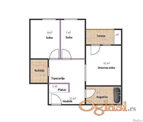 Tekst oglasa: <p>Prodajem dvoiposoban stan, renovirano: kupatilo, kuhinja, pvc stolarija.</p> <p>Dve odvojene sobe i dnevni boravak.</p> |