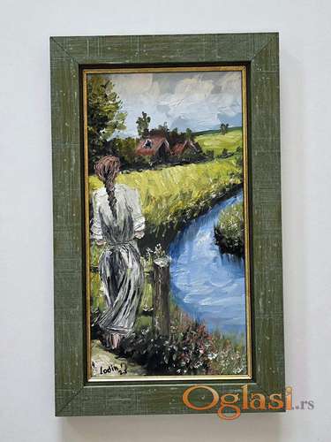 Tekst oglasa: <p>Ulje na lesonitu Devojka sa polja zelenih, prelepo umetnicko delo. Slika je uramljena u jako lep ram, dimenzije slike sa ramom 40 x 24. Privatna kolekcija.</p> |