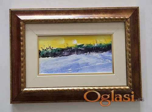 Tekst oglasa: <p>Ulje na platnu Granica dana, minijatura. Prelepo umetnicko delo. Slika je uramljena u jako lep ram, dimenzije slike sa ramom 40 x 28. Privatna kolekcija.</p> |