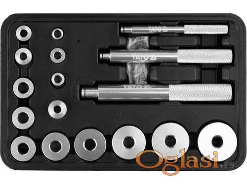 Tekst oglasa: <p>Alat za montažu ležajeva 17 kom</p> <p>Set za montiranje ležaja i semeringa od 17 komada</p> <p>Set koji se koristi za ravnomerno montiranje ležajeva, prstenova, zaptivki, čaura i valjanih osovina.</p> <p>Odgovara većini modela putničkih automobila.</p> <p>Set sadrži:</p> <p>3 komada vretena:</p> <p>Ø 11 x 115 mm,</p> <p> Ø 16 x 140 mm,</p> <p> Ø 21 x 160 mm</p> <p>14 komada adaptera različitih prečnika: 10/12, 12/14, 14/16, 15/17, 16/18, 18/20, 20/22, 22/24, 25/27, 28/30, 30 / 34, 32/36, 35/40, 38/42 mm</p> <p>Novo i ne korišćeno </p> <p>Ukoliko zelite da porucite<br /> Posaljite poruku <br /> 1 Ime i prezime<br /> 2 Ulica i broj<br /> 3 Mesto i postanski broj<br /> 4 Broj telefona za kontakt</p> |