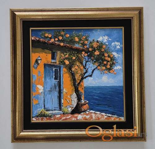 Tekst oglasa: <p>Ulje na platnu Mediterano 2, prelepo umetnicko delo. Slika je uramljena u jako lep ram, dimenzije slike sa ramom 58 x 58. Privatna kolekcija.</p> |