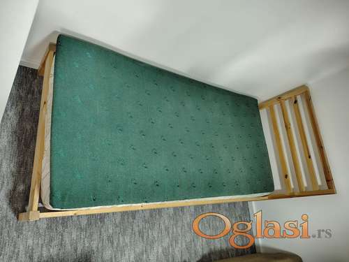 Tekst oglasa: <p>Odlican krevet, star nekoliko godina. Prodaje se iskljucivo jer podstanar donosi svoj krevet i ovaj postaje visak. <br /> Uz njega ide i dusek dimenzija 90x190 i zelena prostirka sa slike. <br /> Krevet mozemo da demontiramo radi lakseg transporta. Trenutno nije rasklopljen da bi zainteresovani kupci mogli da ga pogledaju. <br /> Dimenzije kreveta 205cmx95cm<br /> Moguc dogovor oko cene.</p> |