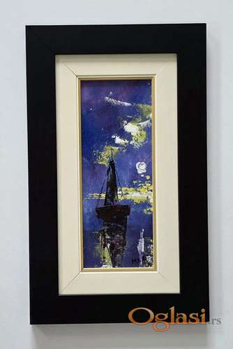 Tekst oglasa: <p>Ulje na platnu Ljubicasta noc na moru, prelepo umetnicko delo. Slika je uramljena u jako lep ram, dimenzije slike sa ramom 45 x 27. Privatna kolekcija.</p> |