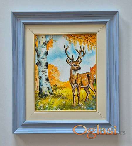Tekst oglasa: <p>Ulje na platnu Zivot jednog jelena, prelepo umetnicko delo. Slika je uramljena u jako lep ram, dimenzije slike sa ramom 46 x 40. Privatna kolekcija.</p> |