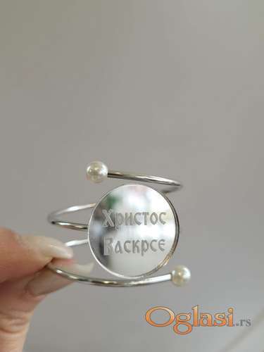 Tekst oglasa: <ul><li>Prsten za salvete</li> <li>Metalne osnove</li> <li>U ponudi imamo prstenove boje srebra i zlata</li> <li>Natpis možemo menjati po Vašoj želji</li> <li>Može pisati: Srećan Uskrs, Srećan Vaskrs, Hristos Vaskrse, Lazareva subota ili bilo koji Vama odgovara </li> <li>Prečnik prstena je oko 3,5cm</li> <li>Vreme izrade po dogovoru</li> <li>Izradjujemo i prstenove u većim količinama</li> <li>Šaljemo Post expressom na Vašoj adresi</li> <li>Za više informacija, možete nas kontaktirati pozivom na broj, porukom, ili putem Viber-a</li> </ul> |