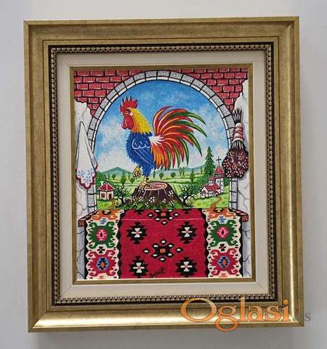 Tekst oglasa: <p>Naiva, ulje na platnu Srpski petao. Prelepo umetnicko delo. Slika je uramljena u jako lep ram, dimenzije slike sa ramom 42 x 38. Privatna kolekcija.</p> |