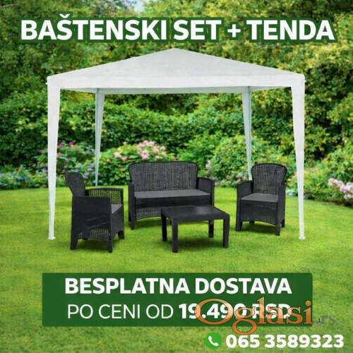 Tekst oglasa: <p>Kontakt: 0653589323 - Set sa 4 jastuka - Boja jastuka: siva - 2 fotelje, dvosed i sto - Dimenzija fotelje: 59 × 57 × 85,5 cm - Dimenzija dvoseda: 113 × 57 × 85,5 cm - Dimenzija stola: 59 × 46 × 40 cm - Pakovanje: 1 komad TENDA: Karakteristike proizvoda: Dimenzije: 300 x 300 x 250 cm Materijal konstrukcije: Metal Materijal platna: Polietilen 100 g Dimenzija konstrukcije: 18 x 18 x 18 mm Boja platna: Bela Boja konstrukcije: Bela</p> |