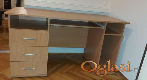 Tekst oglasa: <p>Na prodaju kompjuterski radni sto.</p> <p> </p> <p>Poseduje izvlačivu policu za tastaturu, dve otvorene police, prostor za kućište i tri fioke.</p> <p> </p> <p><strong>Dimenzije radnog stola</strong></p> <p> </p> <p>Širina: 137,5 cm</p> <p>Visina: 75 cm</p> <p>Dubina: 67 cm</p> <p> </p> <p>Za sve dodatne informacije, slobodno pozovite.</p> |